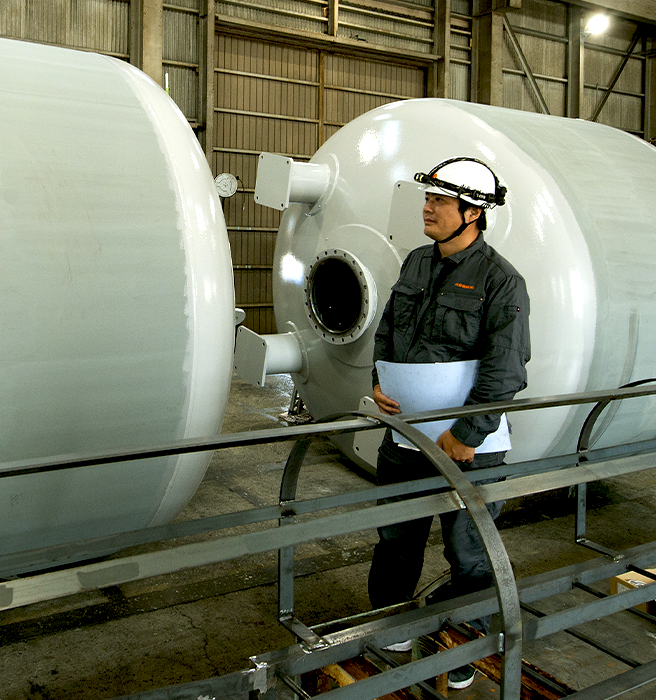 工場勤務から始め、3年目から据付工事の現場管理を任されるようになりました。今は設計・製作した装置を顧客先で据付する管理業務を担っています。現場は全国にあり、協力会社を手配し、完了まで一貫して管理します。数か月単位で現地に滞在することもあり、工場に戻った時はスタッフ教育も担当しています。