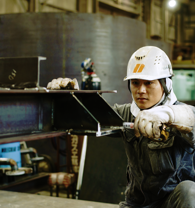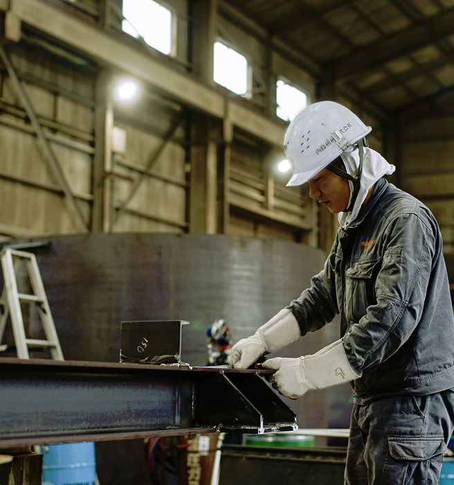 工場で装置や設備を実際に製造しています。製缶工として働きながら、溶接技術を習得しています。